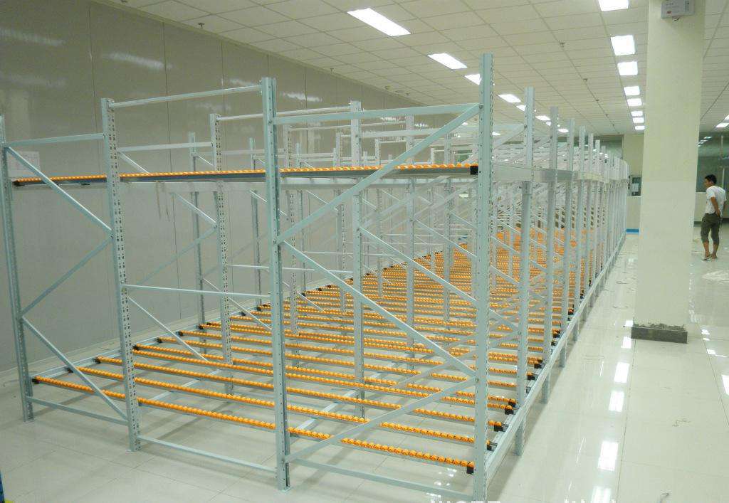 1、采用滚轮式铝合金等流力条,利用货物自重实现货的先进先出。